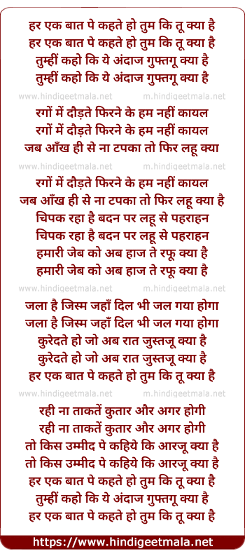 Lyrics of Har Ek Baat Pe Kehte Ho Tum - हर एक बात पे कहते हो तुम कि तू क्या है