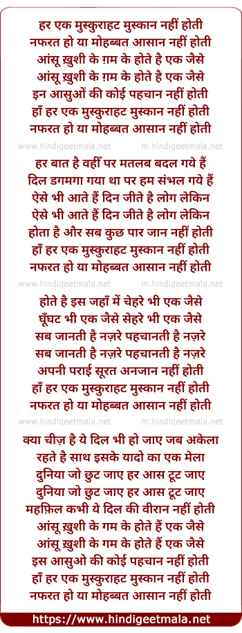 Lyrics of Har Ek Muskurahat Muskan Nahi Hoti - हर एक मुस्कुराहट मुस्कान नहीं होती