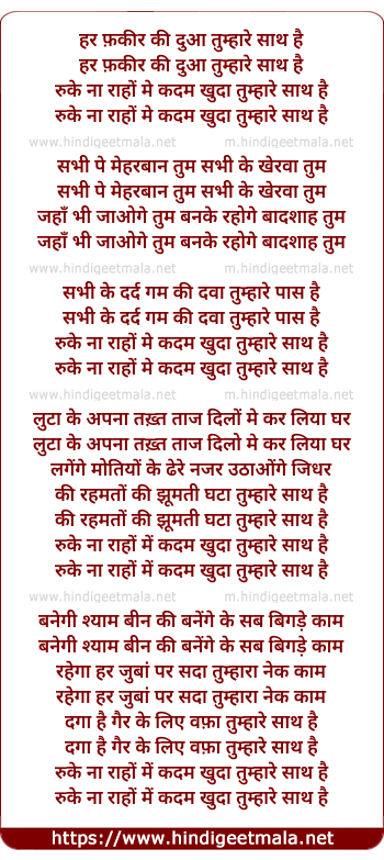 Lyrics of Har Fakeer Ki Dua Tumhare Sath Hai - हर फ़कीर की दुआ तुम्हारे साथ है