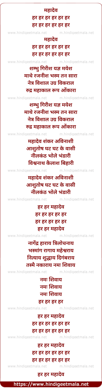 Lyrics of Har Har Mahadev - हर हर महादेव