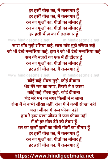Lyrics of Har Hasin Chiz Ka - हर हसीं चीज़ का