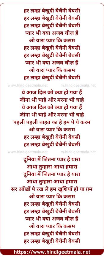 Lyrics of Har Lamha Bekhudi - हर लम्हा बेखुदी