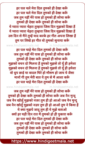Lyrics of Har Pal Chahe Mera Dil - हर पल चाहे मेरा दिल