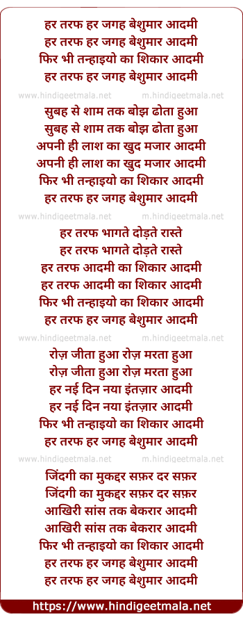 Lyrics of Har Taraf Har Jagah Beshumar Aadmee - हर तरफ हर जगह बेशुमार आदमी