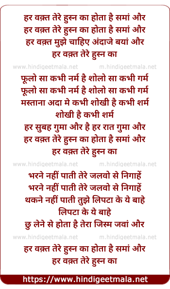 Lyrics of Har Waqt Tere Husn Ka - हर वक़्त तेरे हुस्न का