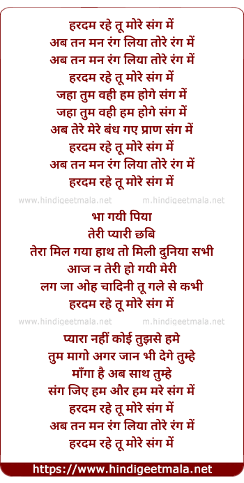 Poetic Translation - Lyrics of Hardam Rahe Tu More Sang Me