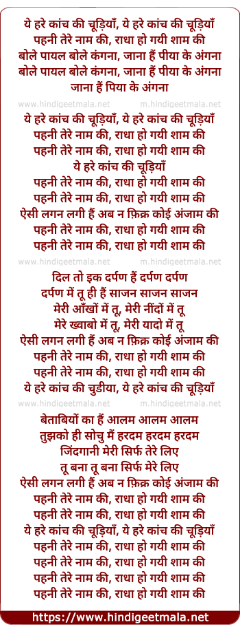 Lyrics of Hare Kanch Ki Chuddiyan - हरे कांच की चूड़ियाँ