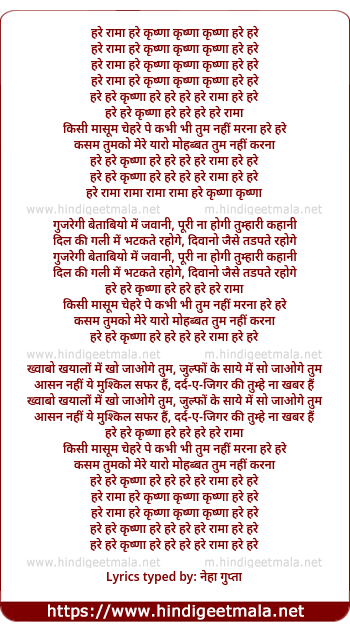 Lyrics of Hare Raama Hare Krishna - हरे रामा हरे कृष्णा