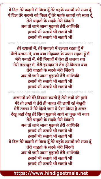 Lyrics of Hasaye Bhi Rulaye Bhi Sataye Bhi - हसायें भी रुलायें भी सतायें भी