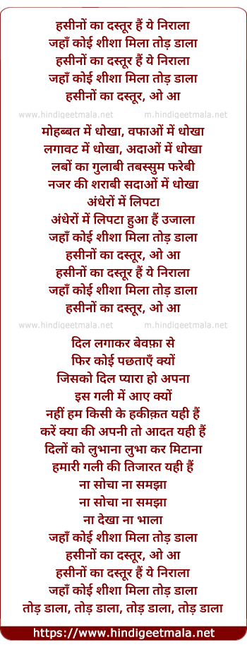 Lyrics of Hasino Ka Dastoor - हसीनों का दस्तूर