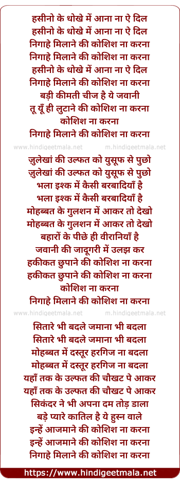 Poetic Translation - Lyrics of Hasino Ke Dhokhe Me - हसीनो के धोखे में