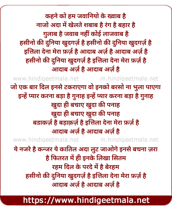 Lyrics of Hasino Ki Duniya Khudgarj Hai - हसीनो की दुनिया खुदगर्ज़ है