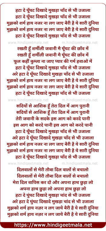 Lyrics of Hata De Ghunghat Dikhade Mukhda - हटा दे घूँघट दिखादे मुखड़ा