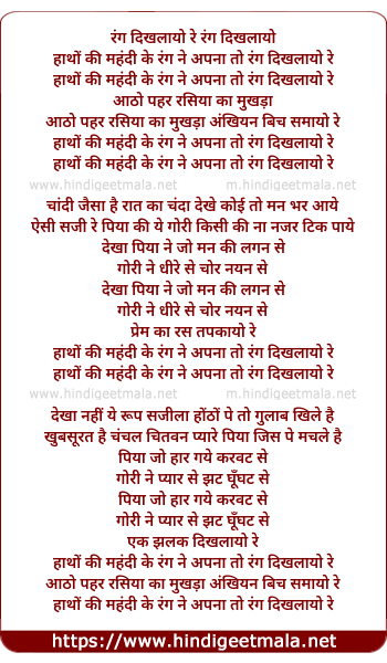 Lyrics of Hatho Ki Mehndi Ke Rang Ne - हाथों की महंदी के रंग ने