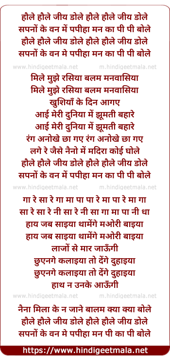 Lyrics of Haule Haule Jiyaa Dole - हौले हौले जिया डोले