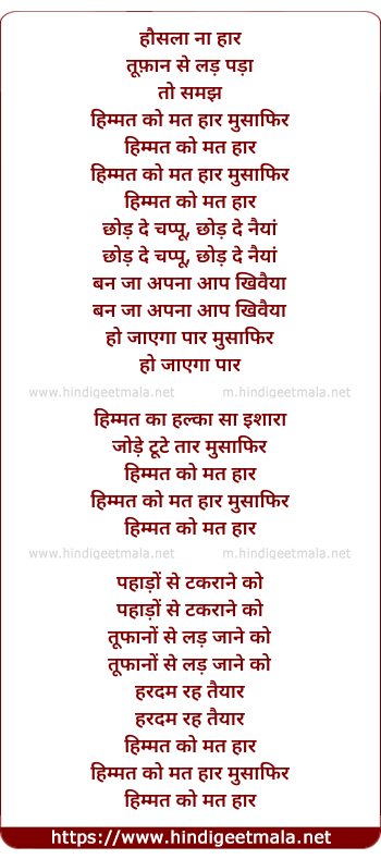 Lyrics of Haunsla Na Haar - हौसला ना हार