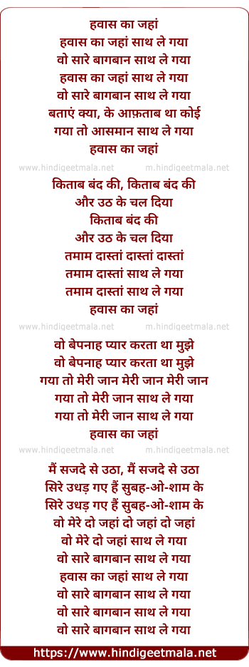 Lyrics of Hawaas Ka Jaha Saath Le Gaya - हवास का जहां