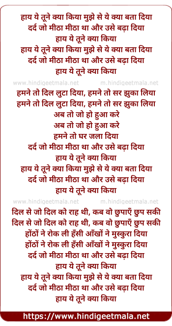 Lyrics of Hay Yeh Tune Kya Kiya - हाय ये तूने क्या किया
