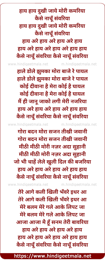 Lyrics of Haye Haye Dukhi Jaaye Mori Kamariya - हाय हाय दुखी जाये मोरी कमरिया