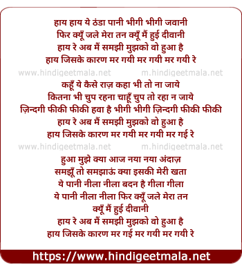 Lyrics of Haye Haye Ye Thanda Pani Bhigi Bhigi Jawani - हाय हाय ये ठंडा पानी भीगी भीगी जवानी