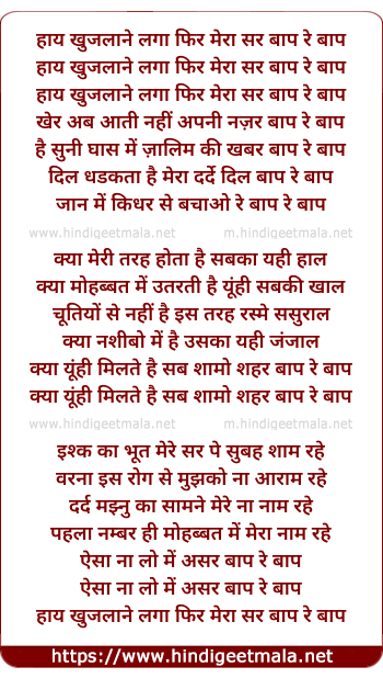 Lyrics of Haye Khujlane Laga Phir Mera Sar - हाय खुजलाने लगा फिर मेरा सर