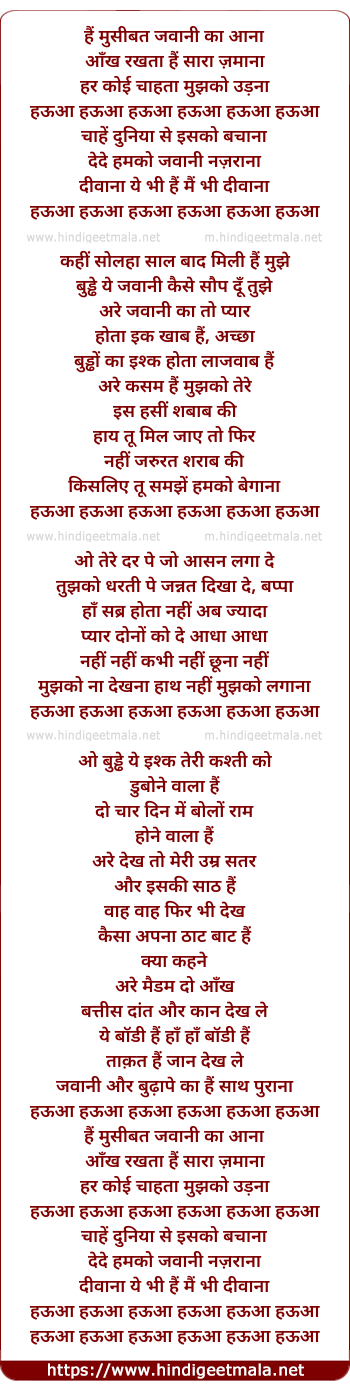 Lyrics of Haye Masibat Jawani Ka Aana - हैं मुसीबत जवानी का आना