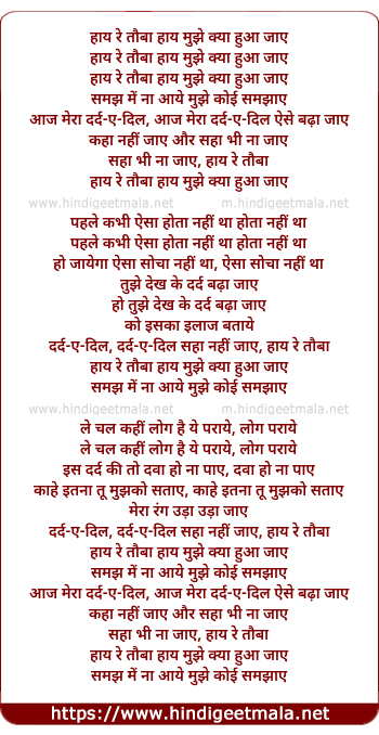 Lyrics of Haye Re Toba Haye Mujhe Kya Hua - हाय रे तौबा हाय मुझे क्या हुआ