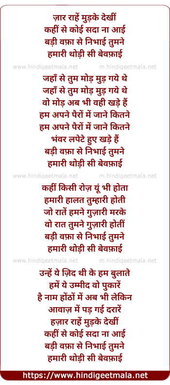 Lyrics of Hazaar Raahen Mudke Dekhi - हज़ार राहें मुड़के देखीं