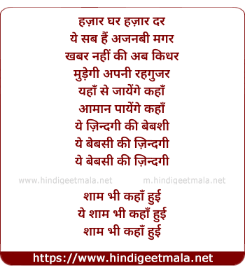 Lyrics of Hazar Ghar Hazar Dar Ye Sab Hai Ajnabi - हज़ार घर हज़ार दर ये सब हैं अजनबी