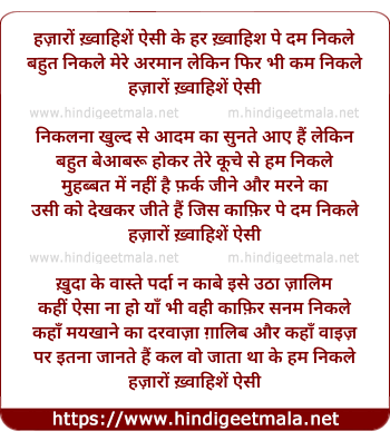 Lyrics of Hazaro Khwahishe Aisi Ke - हज़ारों ख़्वाहिशें ऐसी के