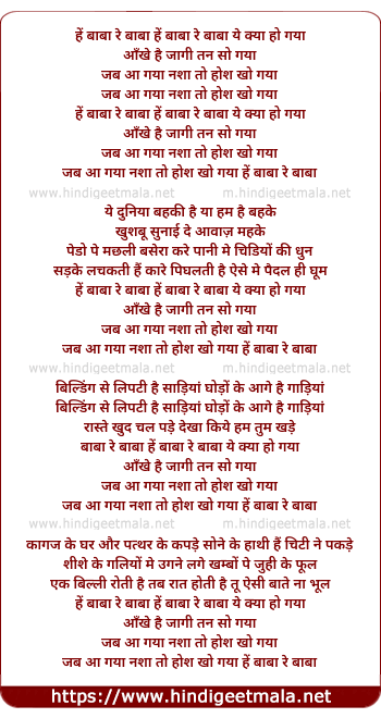 Lyrics of He Baba Re Baba Ye Kya Ho Gaya - हें बाबा रे बाबा ये क्या हो गया