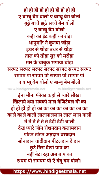 Lyrics of He Bambo Bambolo