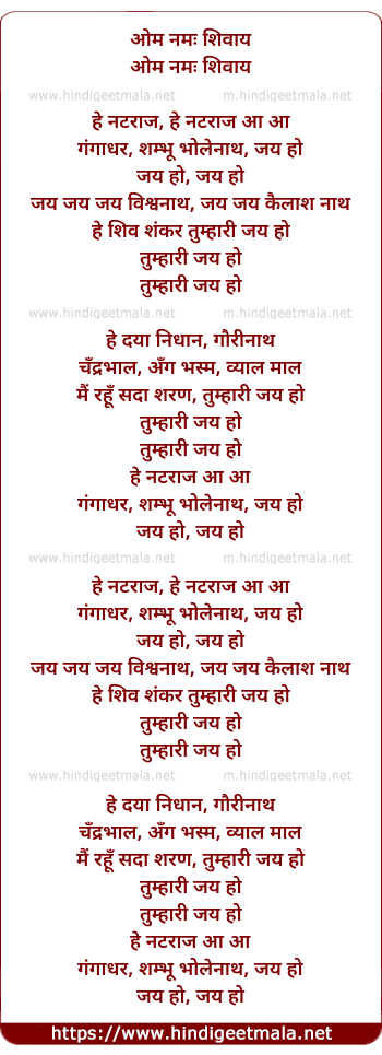 Lyrics of Om Namah Shivay - ओम नमः शिवाय