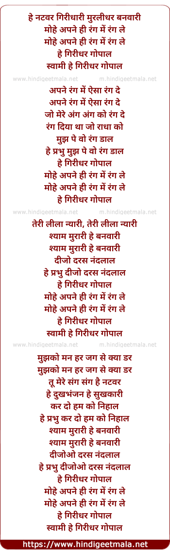 Lyrics of He Natavar Girdhari Murlidhar Banwari - हे नटवर गिरीधारी मुरलीधर बनवारी