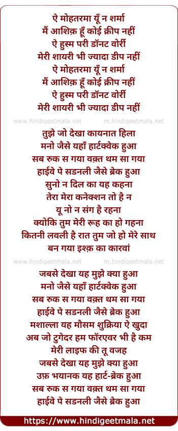 Lyrics of Heartquake Hua - हार्टअटेक हुआ
