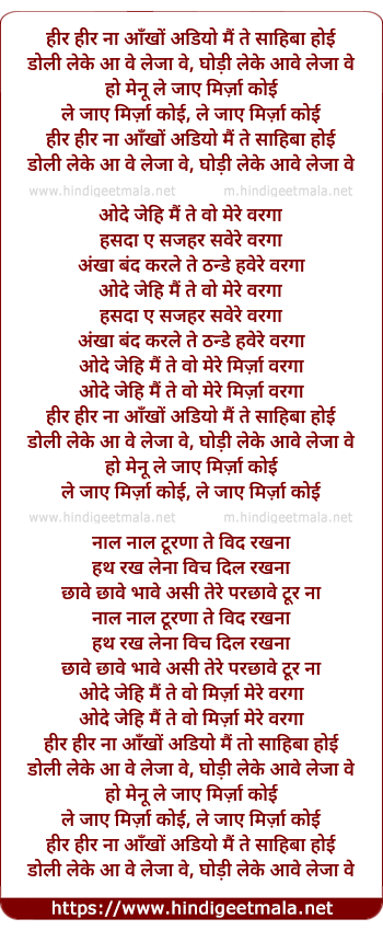 heer heer na ankho adiyo mai to sahiba hoyi