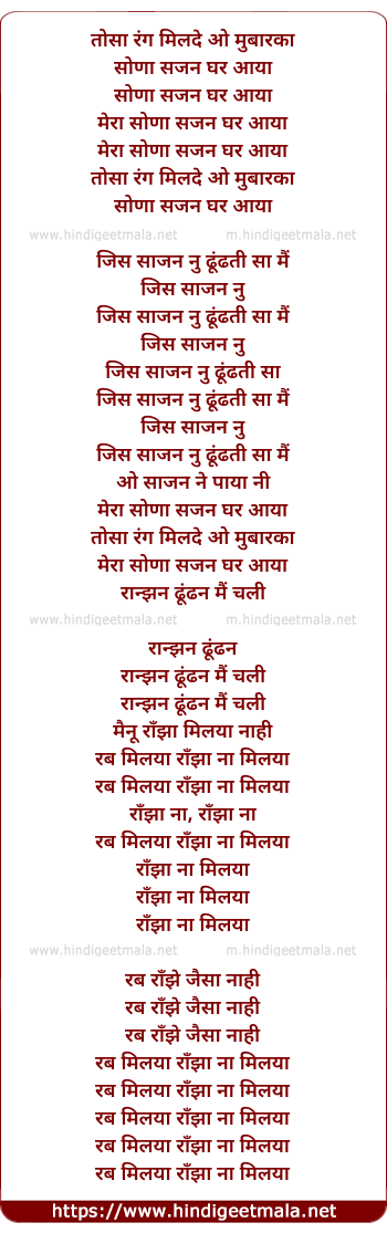 Poetic Translation - Lyrics of Heer (The Search) - तोसा रंग मिलदे ओ मुबारका
