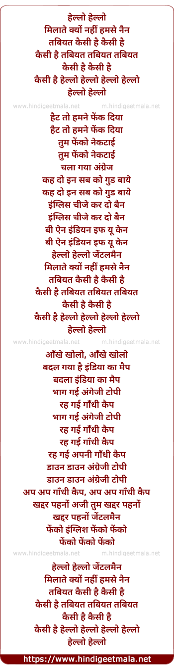 Lyrics of Hello Hello Gentleman - हेल्लो हेल्लो