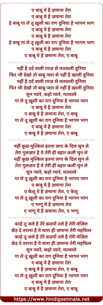 Lyrics of Hey Baabu Yeh Hai Jamaana Tera - ए बाबू ये है ज़माना तेरा