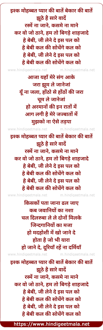 ishk mohbbat pyar ki bate, bekar ki bate