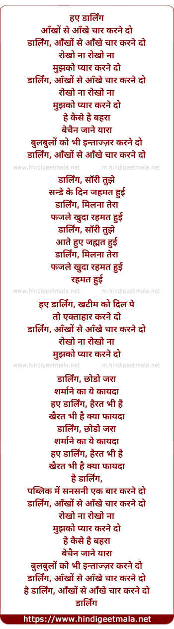 Hey Darling, Aankho Se Aankhe Char Karne Do - हे डार्लिंग आँखों से आँखे चार करने दो