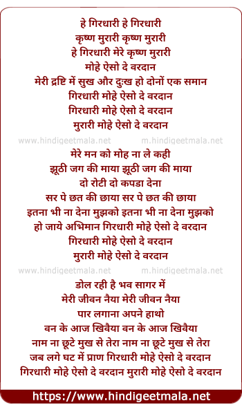 girdhari mohe aiso de vardan