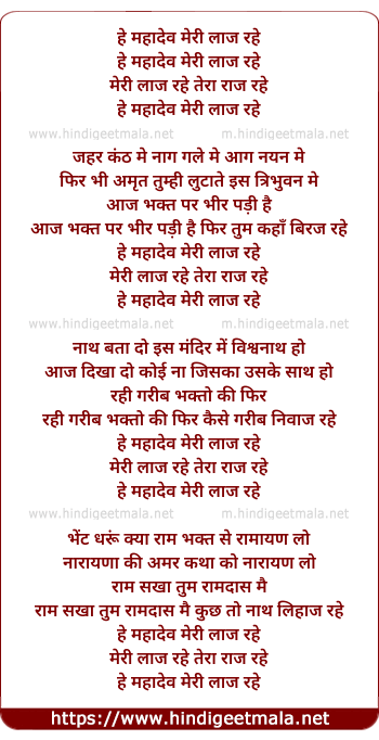 Lyrics of He Mahaadev Meri Laaj Rahe - हे महादेव मेरी लाज रहे