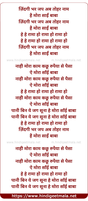 Poetic Translation - Lyrics of Jindagi Bar Jap Ab Tohar Naam Hey Mora Sai Baba - ज़िंदगी भर जप अब तोहर नाम हे मोरा साईं बाबा
