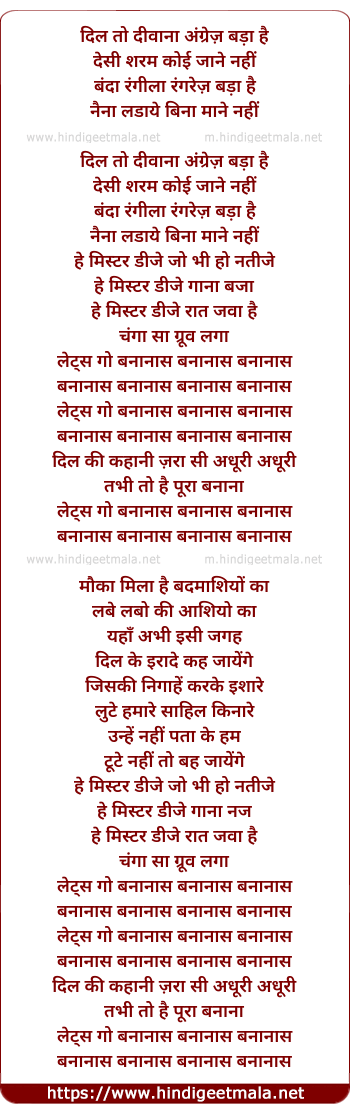 Lyrics of Hey Mr. Dj - Lets Go Bananas - हे मिस्टर.डीजे- लेट्स गो बनानस