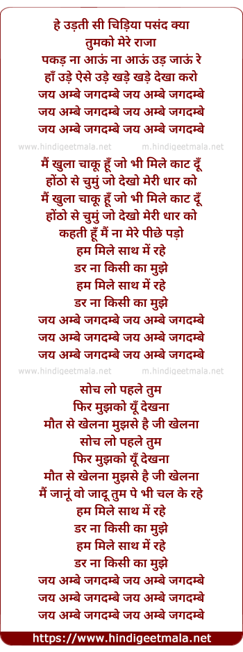 Lyrics of Hey Udti Si Chidiya - हे उड़ती सी चिड़िया