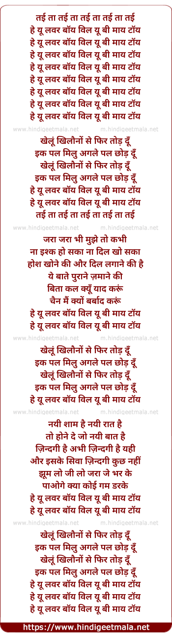 Lyrics of He You Lover Boy, Will You Be My Toy - हे यू लवर बॉय, विल यू बी माय टॉय