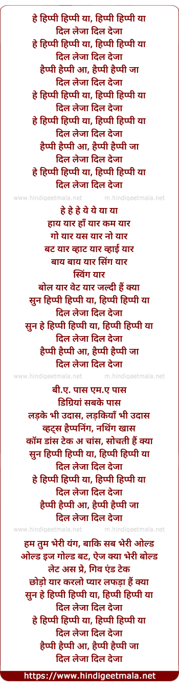 Lyrics of Hippy Hippy Ya - हिप्पी हिप्पी या
