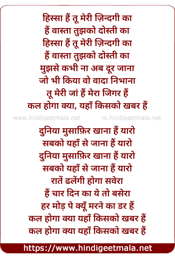 Lyrics of Hissa Hai Tu Meri Zindagi Ka - हिस्सा हैं तू मेरी ज़िन्दगी का