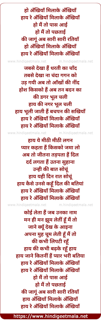 Lyrics of Ho Ankhiya Milake Ankhiya - हो अँखियाँ मिलाके अँखियाँ